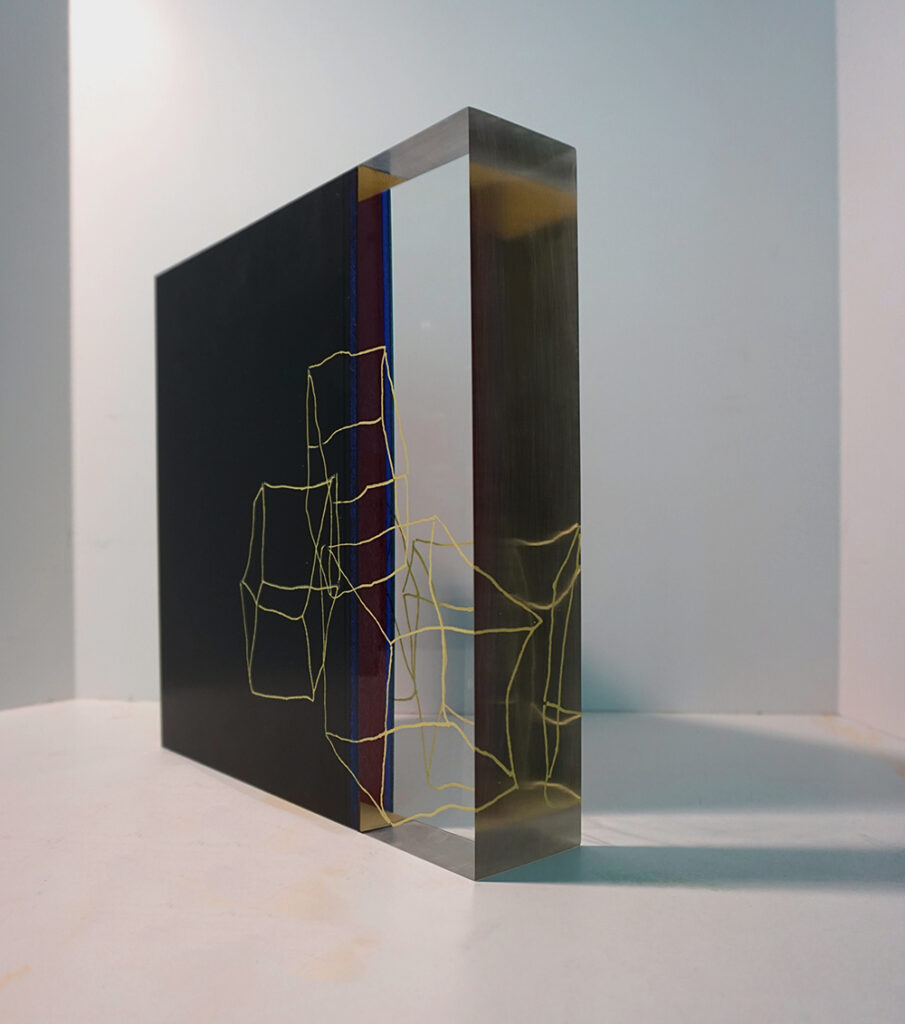 Acrylglas verwende ich in massiven Blöcken, da sich durch die verschiedenen Ebenen eine Räumlichkeit